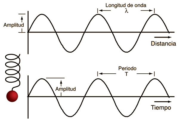 La posición de un objeto vibrante en un movimiento armónico simple dibujará una onda sinusoidal en función del tiempo. (Si la masa sobre un muelle se trasladara a velocidad constante a través de la habitación, dibujaría una onda sinusoidal.)