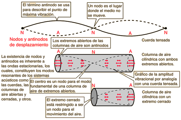 Las ondas estacionarias producidas por el movimiento de estas en las cuerdas o en las columnas de aire, se pueden usar para establecer los valores de la longitud de onda, frecuencia y velocidad de las ondas, de acuerdo con la fórmula de la onda v = fλ.